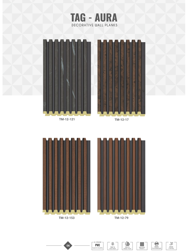 Tag Aura Decorative Wall Planks are a modern and stylish wall décor solution designed to transform plain walls into elegant statement spaces. Crafted with high-quality materials and premium finishes, these wall planks add depth, texture, and a luxurious look to both residential and commercial interiors. Whether you are designing a home, office, showroom, café, or retail space, Tag Aura wall planks deliver a perfect balance of aesthetics, durability, and easy installation.